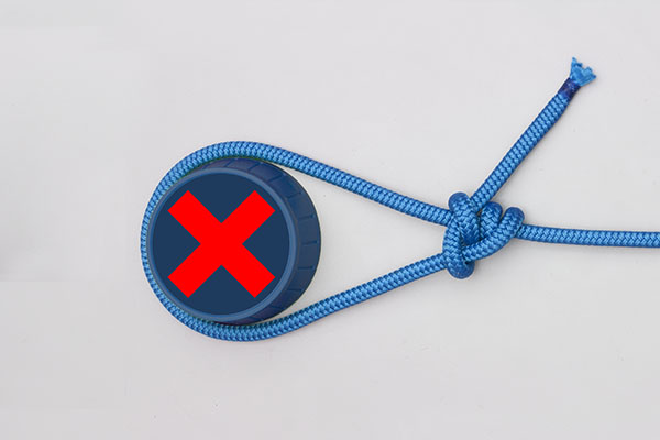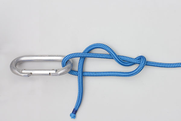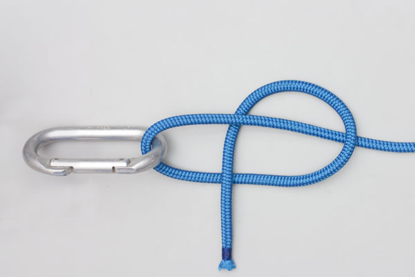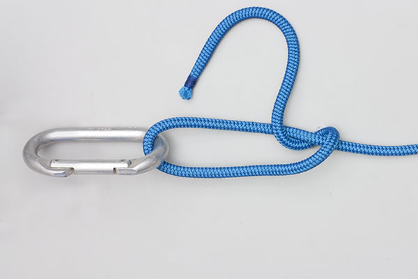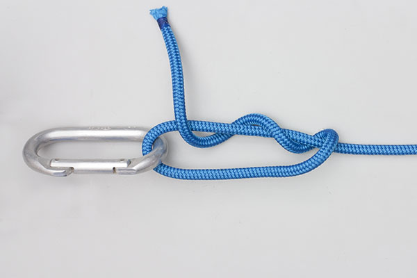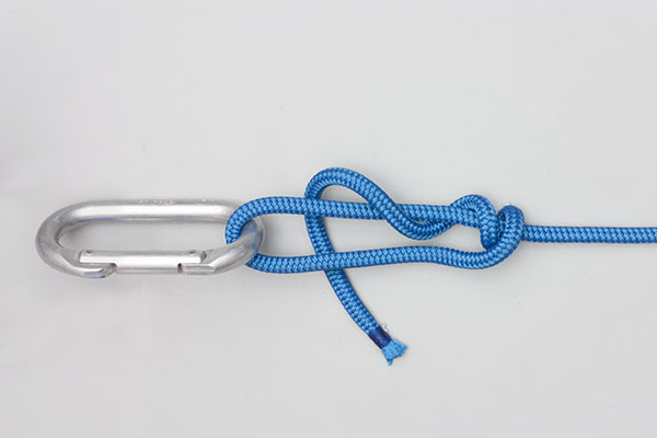 Pass the working end around the object. Wrap the end twice around the standing end. Then wrap the end around both ropes, tuck it under itself, and tighten the knot. Never tie close to a tree or large object – the knot may release.