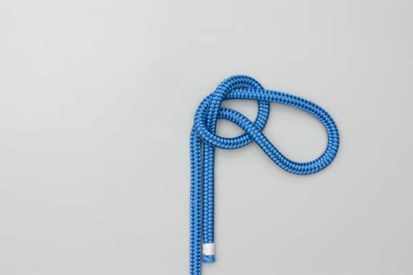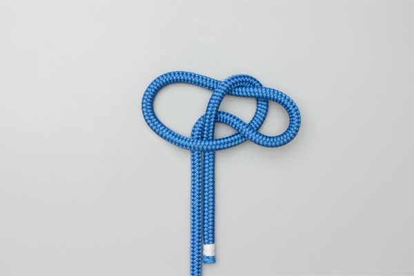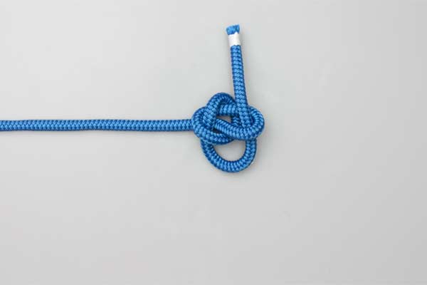 Make a bight and fold it into two loops. Pass the loop in the standing end through the other loop and then tuck the tail through it. Tighten the Half Knot first. Then pull the tail tight and finally the standing end. The underside of the knot shows three separate lobes.