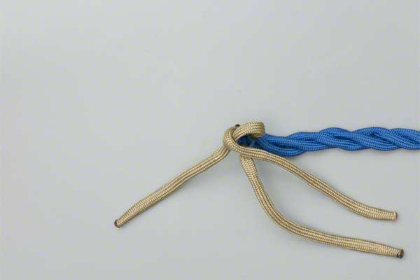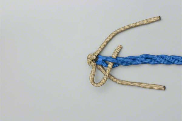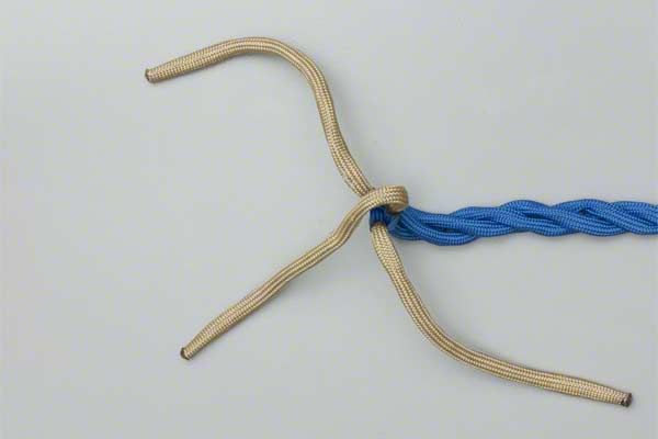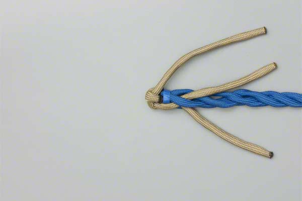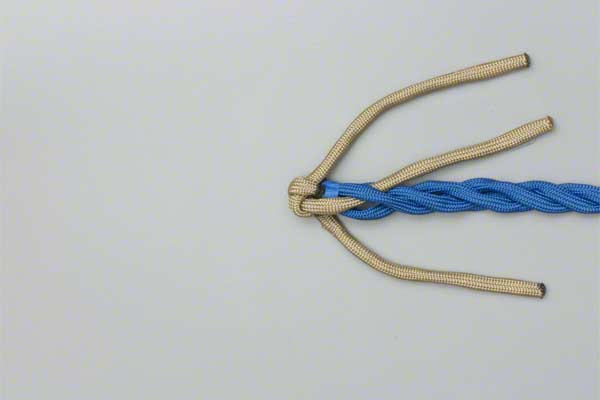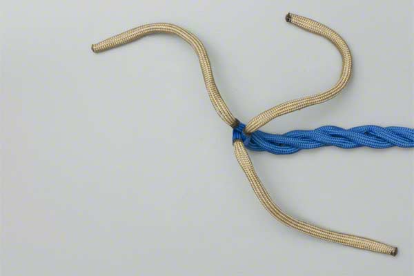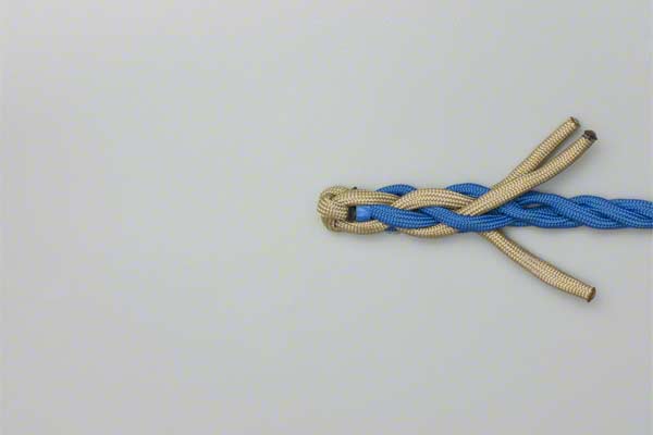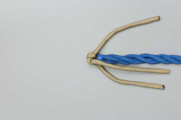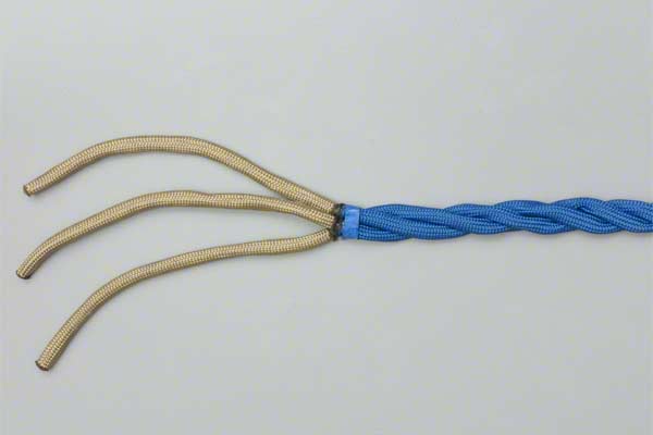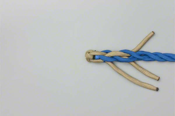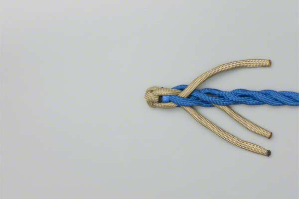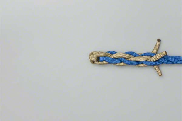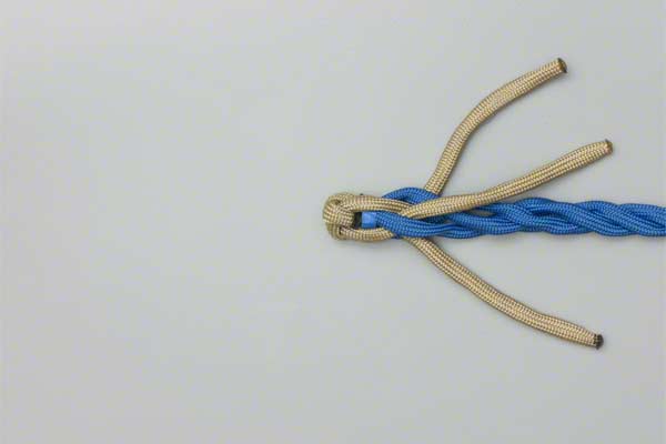 Structure: The back splice starts with a Crown Knot to redirect the strands back towards the standing end. The splice is completed by braiding the ends back into the standing strands. About three complete "tucks" are sufficient as no load is applied to a back splice.