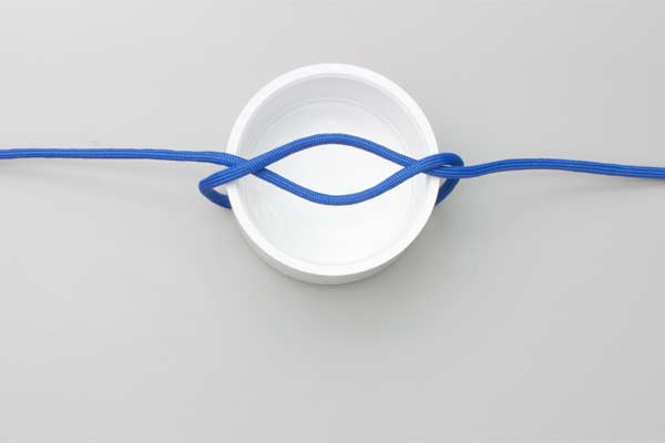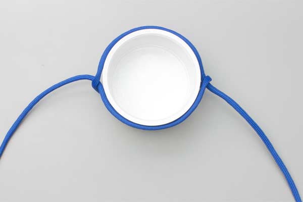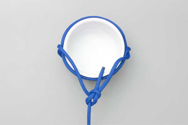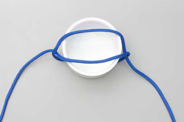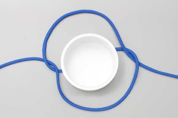 Stand the barrel on the lifting rope. Tie an Overhand Knot across the top. Spread the Overhand Knot until it embraces the top of the barrel. Join the ends with a Bowline and lift. Alternatively, lay the Overhand Knot on the floor, create the figure 8 appearance, and place the barrel on the center and tighten.