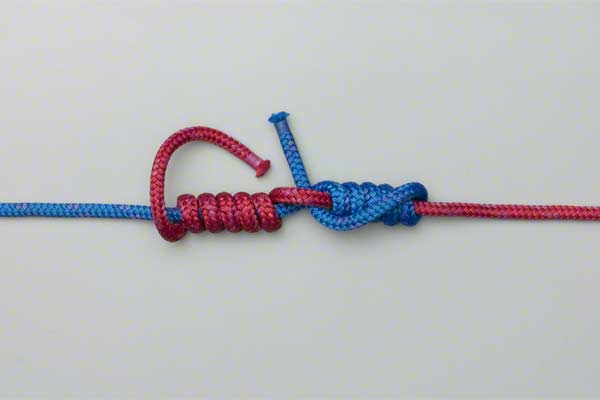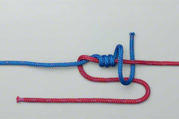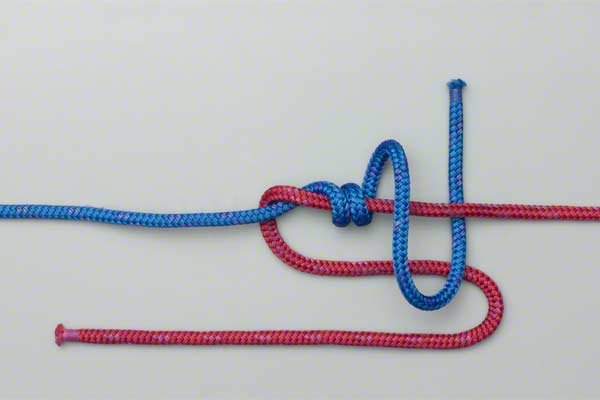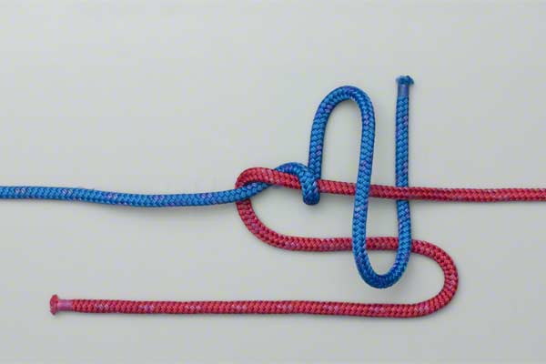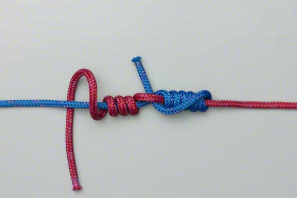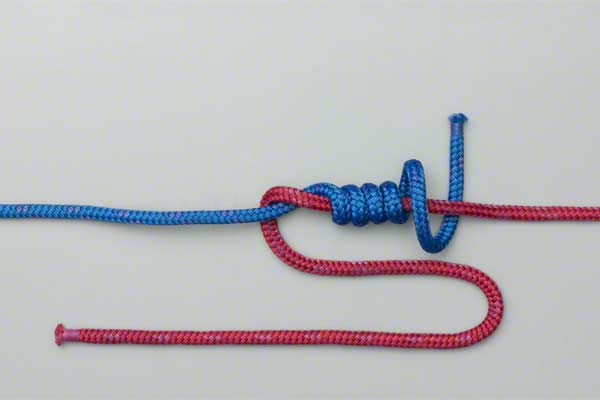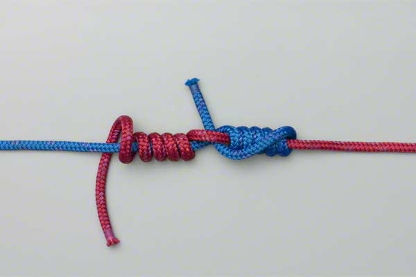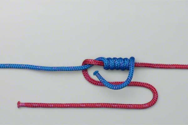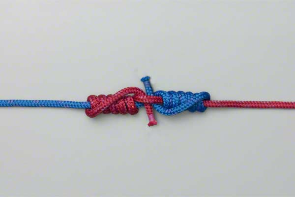 Overlap the two lines to be joined. Wrap one end around the other line about six times. Tuck the end back between the lines. Repeat the process with the other line, tucking the end back between the lines in the opposite direction. Tighten and trim. Note: in nylon tightening this knot alters the appearance.
