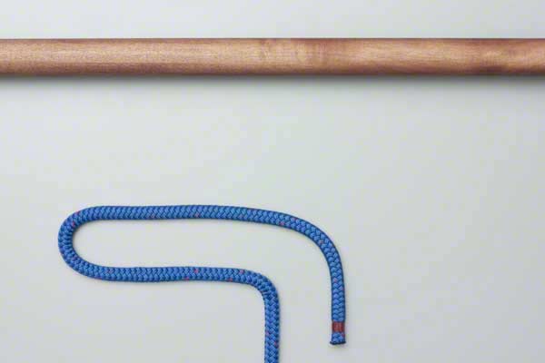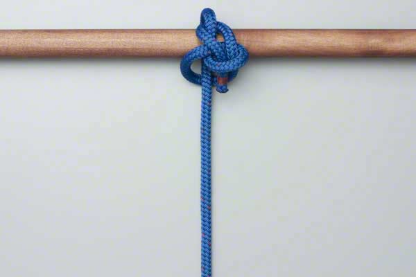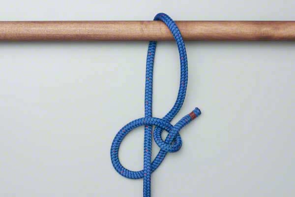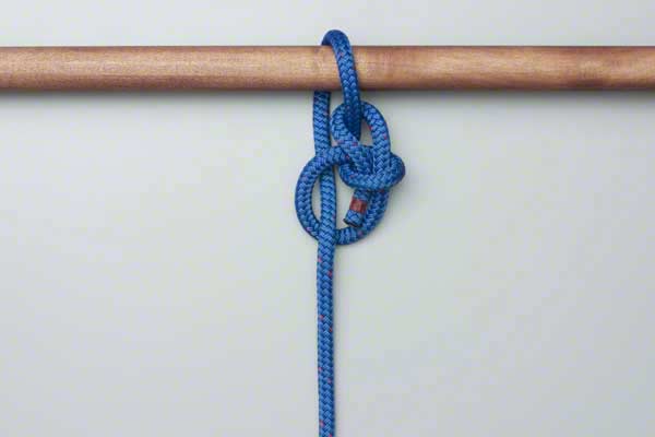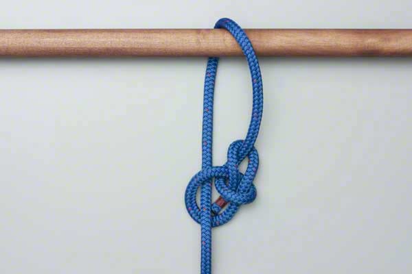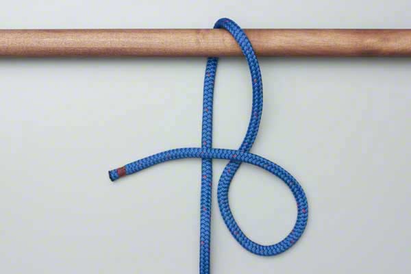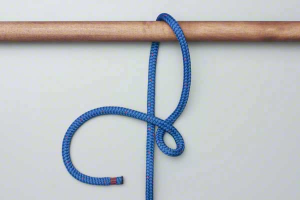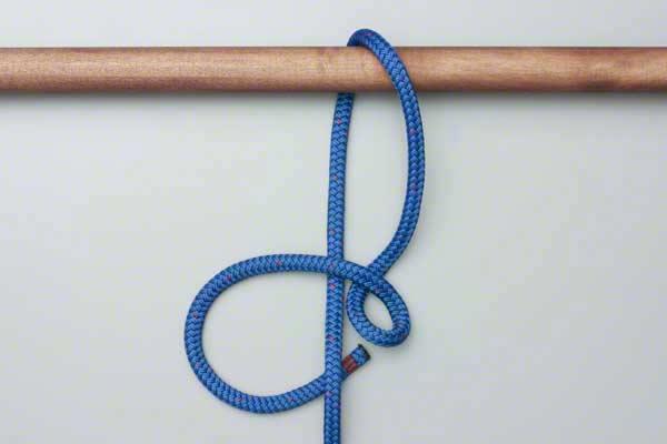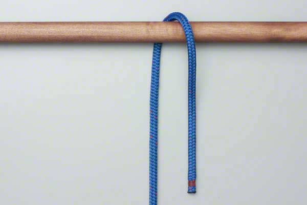 Pass the rope over the pole. Form a loop in the tail. Pass the short end round the standing end, through the loop, around itself, and back through the loop to form the bowline. Pull on the standing end to run the bowline up against the pole.