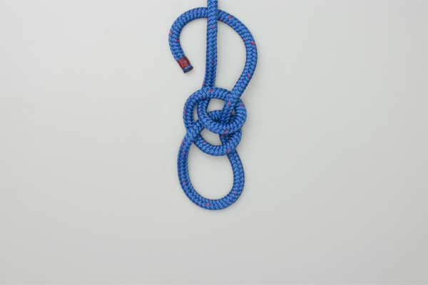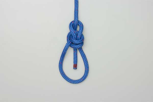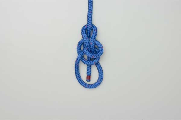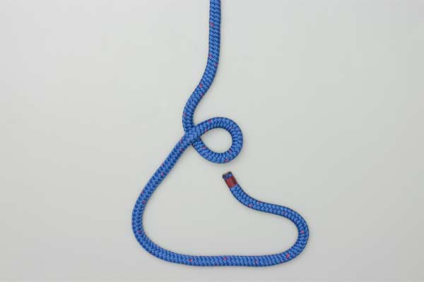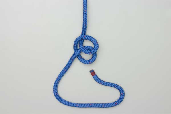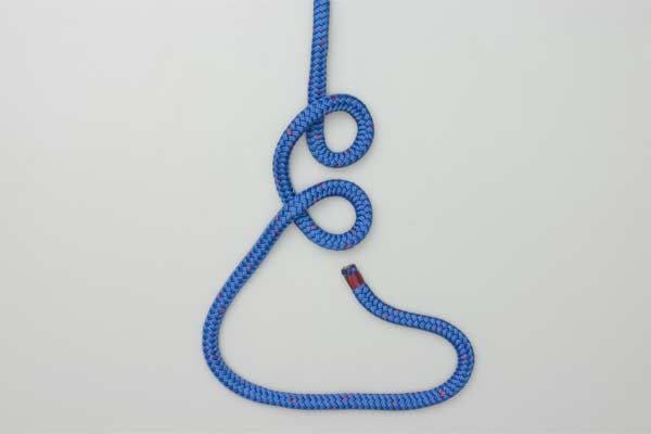 Use enough rope to form the knot. In the standing end make one loop, and then another. Overlap the two loops as a Clove Hitch. Pass the tail end up through the Clove Hitch, around the standing end, and down through the Clove Hitch. Tighten the Clove Hitch to finish the knot.