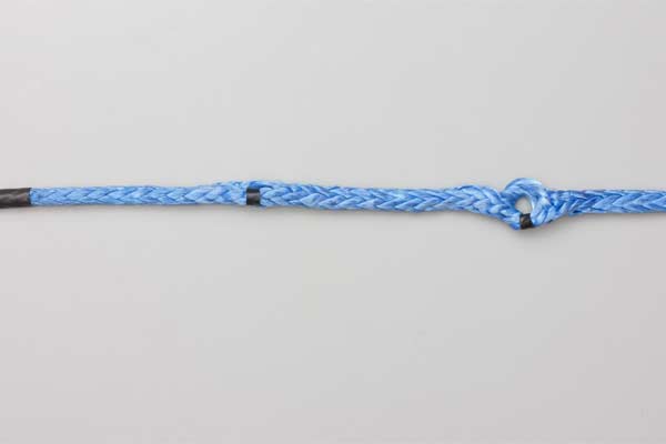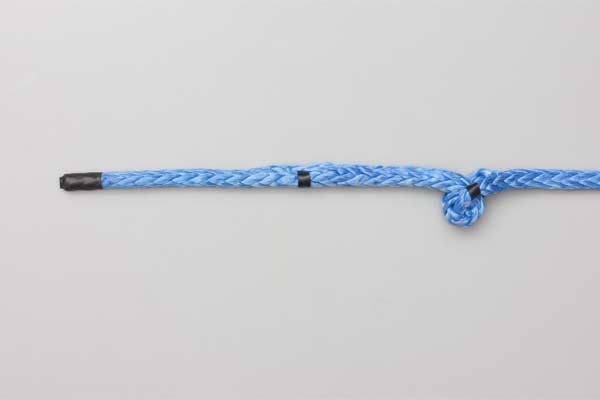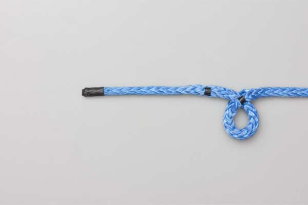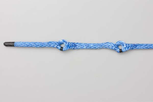 Finishing the Splice: For maximum strength and reliability, the long tail end is tapered, buried, and stitched. Finally the throat of the splice is whipped - see detailed descriptions of these procedures in the Long Bury Splice.