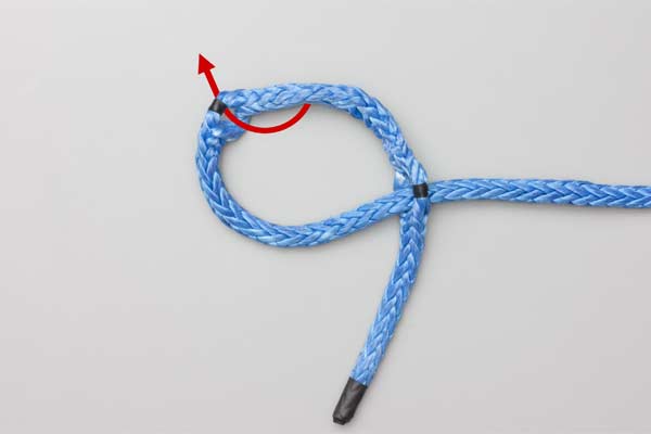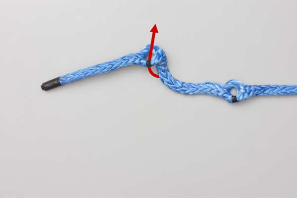 Restore the First Hole: Choose the hole nearest the end and tuck the Eye through the hole followed by the second hole and some extra rope. This process can be awkward. It helps to stretch the hole first. A large fid may help or a bight of line can be wrapped around the rope and used to pull it through.