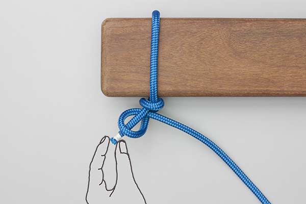 Pass the cord around the object, tie an overhand knot around the standing end, and pull tight. Form a loop around your fingers, slide the loop onto the short end, and pull both ends to tighten the knot. Finally trim the long end.