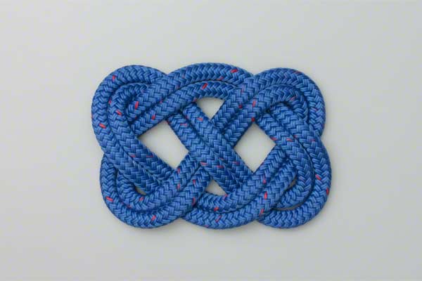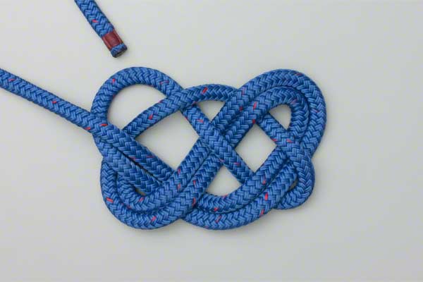 Use a strict under and over sequence to tie a simple Celtic Knot. Then follow the first strand round the same path to finish at the original starting position.