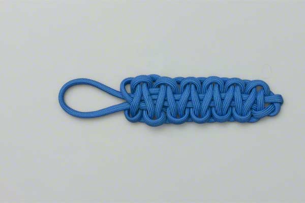 Application: When completed as shown in the animation, it provides an excellent lanyard pull for a snap shackle. The finished lanyard can be attached to the pull-ring using a Girth Hitch.