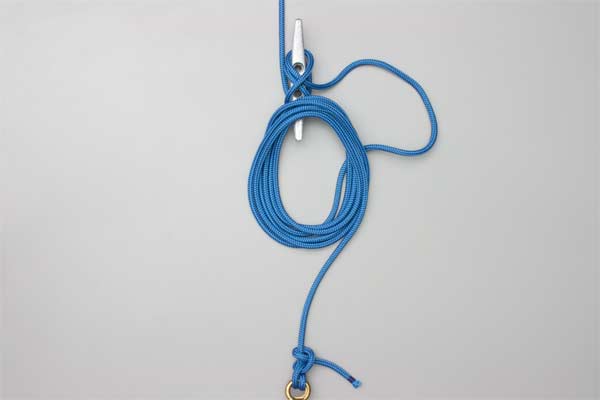 - Untwisted Wraps: As an alternative to hanging the coil on a twisted loop, a larger bight can be left and then wrapped two or three times through the coil before being hooked on to the cleat. These turns bind the coil and may hold it more securely.