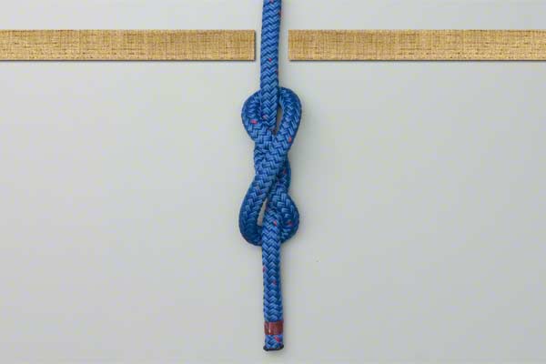 Form a loop in the rope. Pass the end through it. Pass the end through the loop again. Tighten the knot to make a secure stopper knot.
