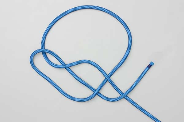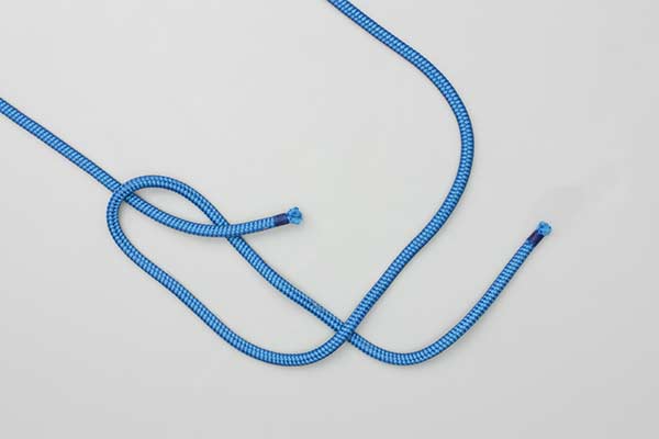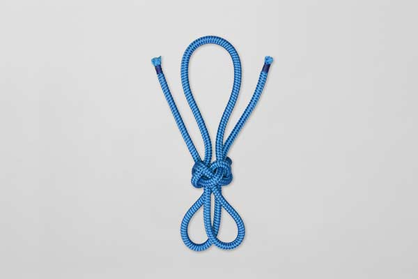 Create an L-shaped loop in one end. Pass the other end through this loop to create a second interlocking L-shaped loop. Hold the outer sides of these two loops and pass them down through the diamond shaped hole in the middle. Pull the two loops away from the ends and the large loop and tighten carefully.