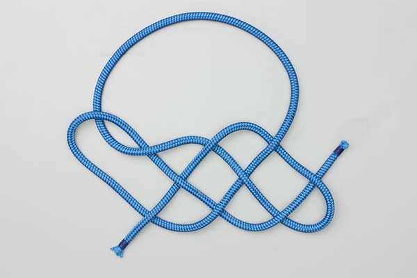 Traditional vs. Symmetrical: The final frames of the Animation show the two principal options for making the Fiador precursor. The first is not radially symmetrical. However, it is the most suitable for use in a halter because the large loop over the head is made of two strands which emerge adjacent to each other. The second version is pleasing as an example of radial symmetry only.
