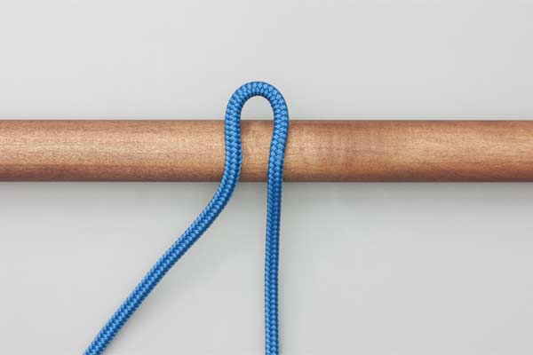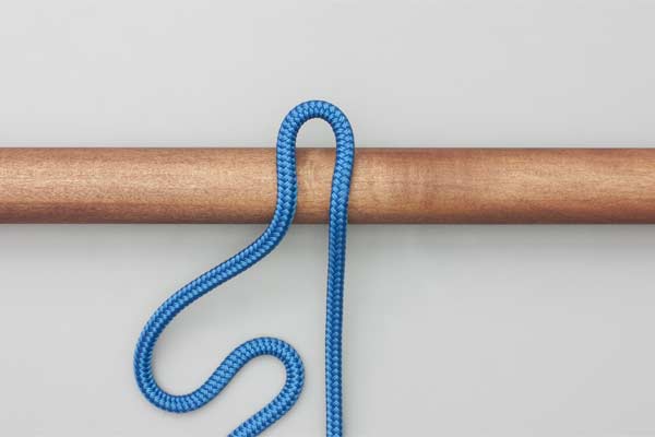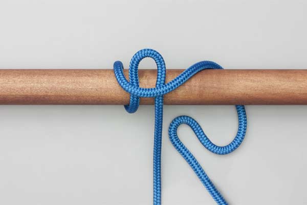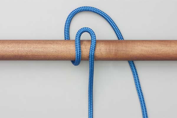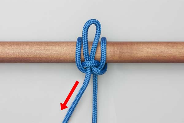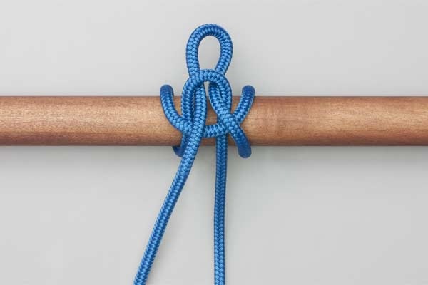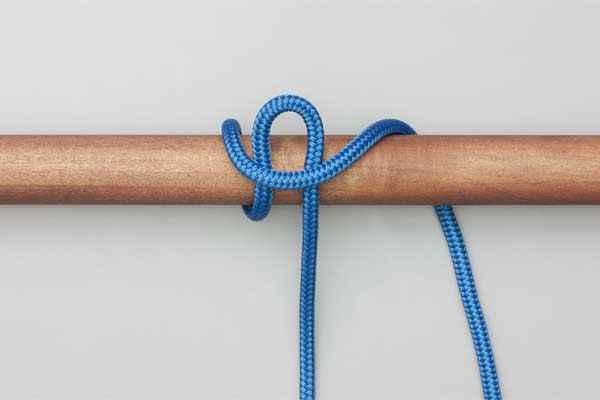 Hold an initial bight of the rope against the pole. Place a second bight behind the pole and around the initial bight. Pass a bight of the tail in front of the pole through the first bight. Tighten to secure the knot and take the load. Pull the tail to release.