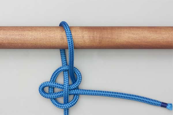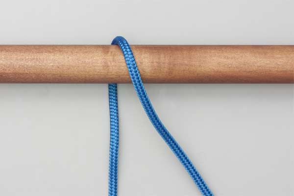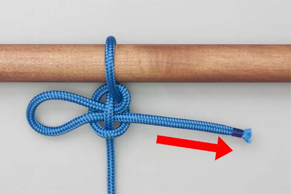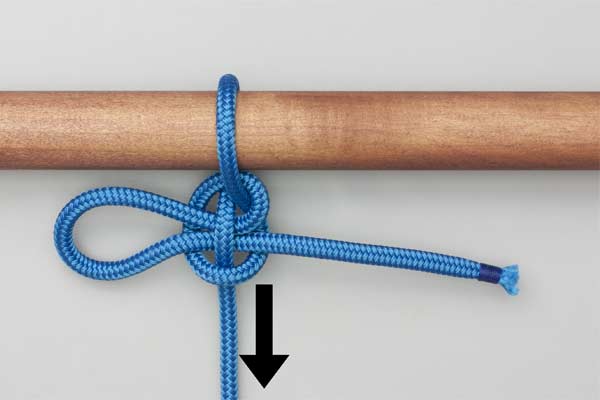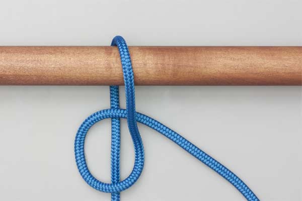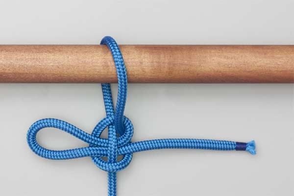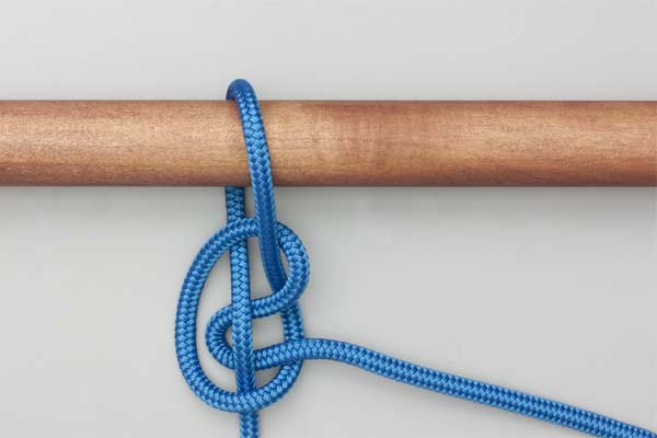 Pass the rope behind and over the pole. With the tail, form a loop so that the tail touches the standing end. Pass a bight of the tail across the loop and under the standing end and tighten to take the load. Pull the tail to release.