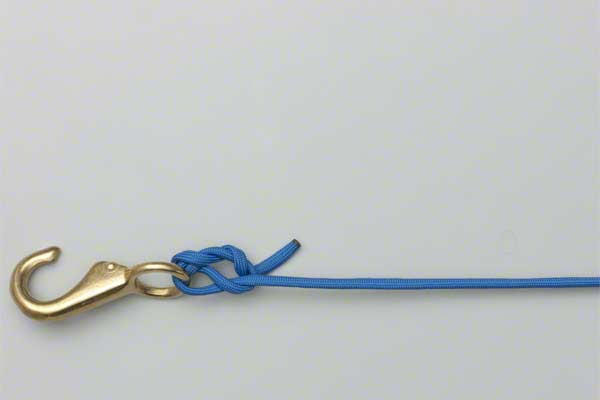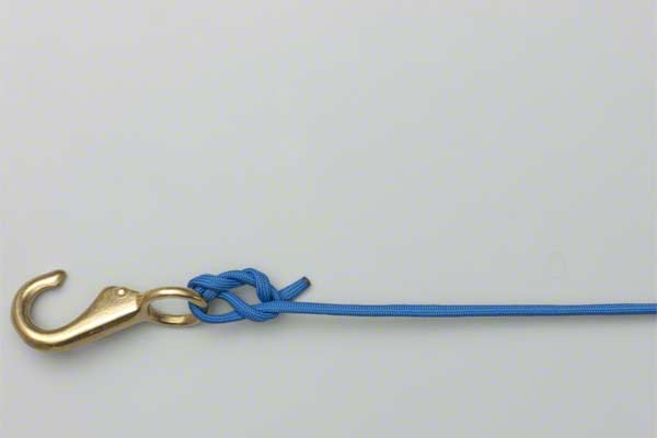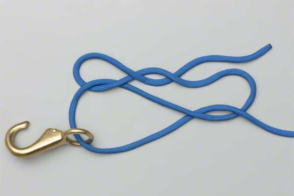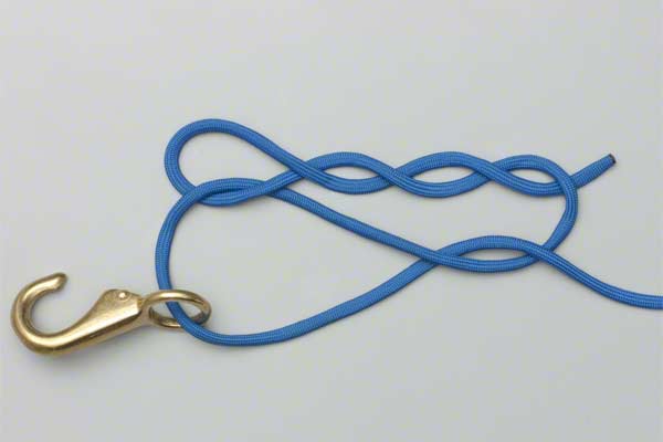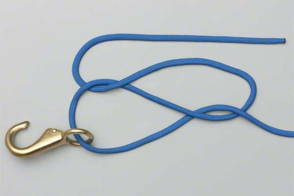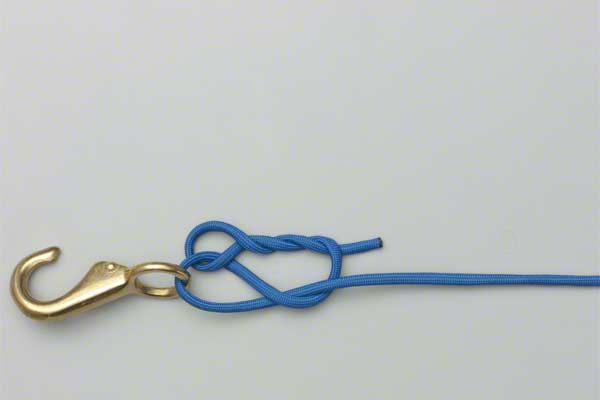Pass the line through the eye of the hook. Pass the tag end around the line, back through the first loop and then back through the second loop. Pass the tag end through the second loop again. Lubricate, tighten, and trim the tag end.