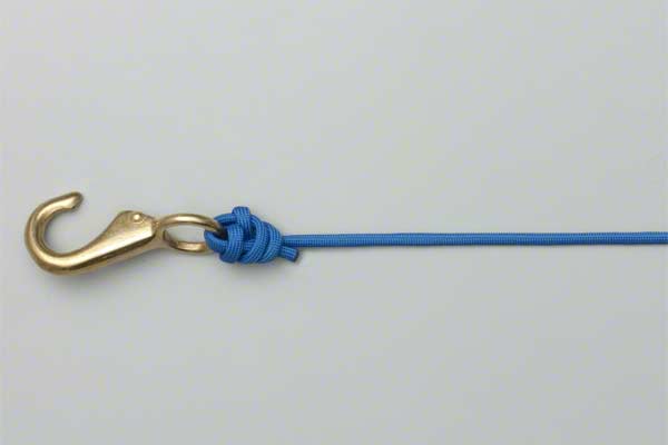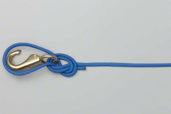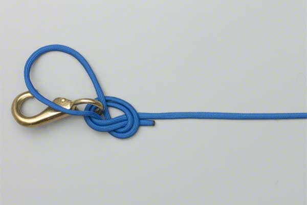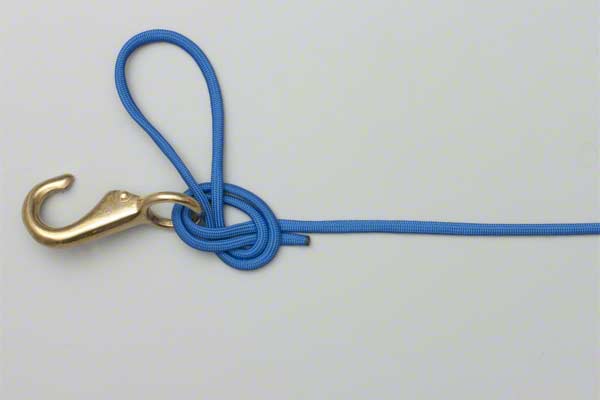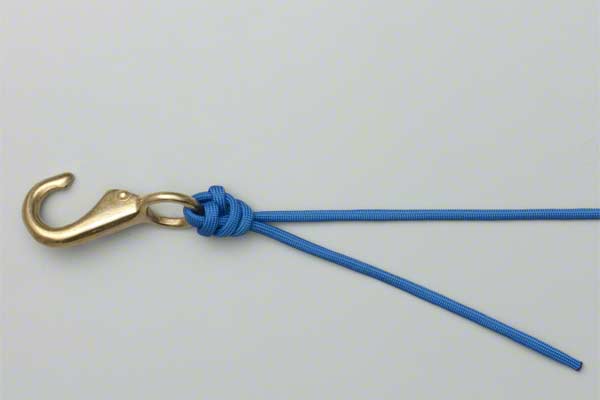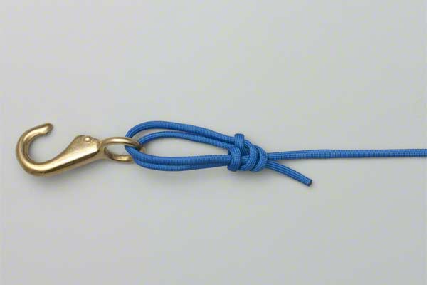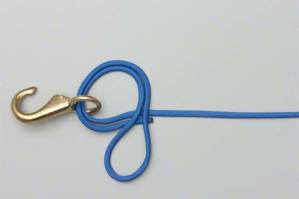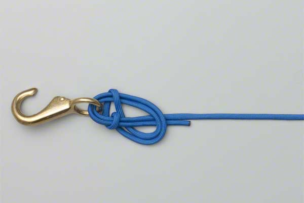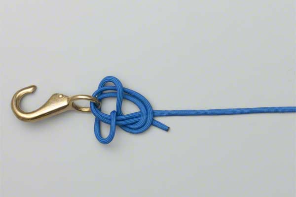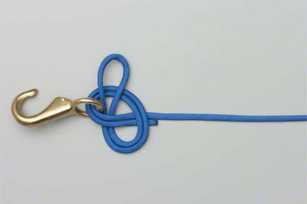 Tying it: After the loop is passed through the eye, an overhand knot is tied with the loop. The loop is then passed over the hook and tightened around the bight below the eye. The effect is that this leaves the hook free to rotate in the knot.