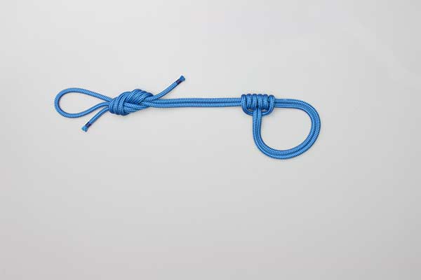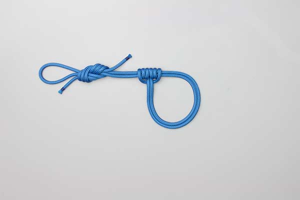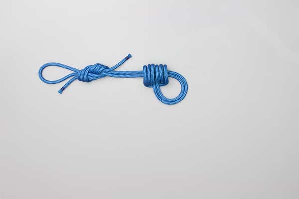 Lay the rope out to form two loops with the ends ovelapping. Use the overlapping section to tie a Figure 8 knot. Twist the long loop to form a pair of three-turn coils. Position these coils to form a tube. Pass the short loop and the Figure 8 Knot through the tube. Tighten the tube and adjust the length.