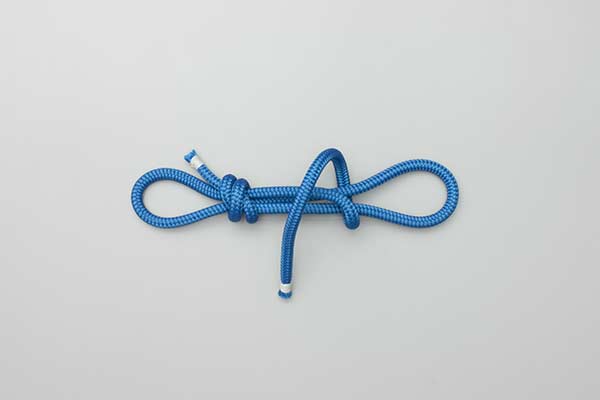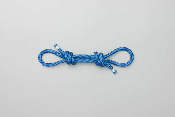 Lay out the rope to create two bights. Wrap one end twice around the adjacent bight and insert it under the two turns. Then wrap the other end twice around its adjacent bight and insert it under the two turns. Pull the ropes to make the two knots touch. Adjust the loop sizes to suit your purpose and tighten.