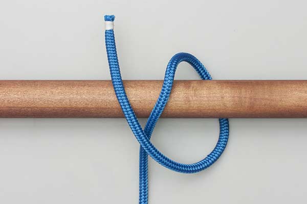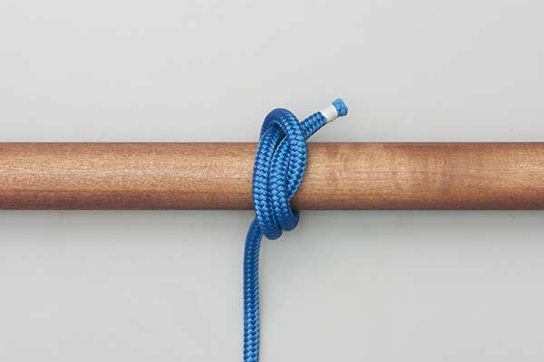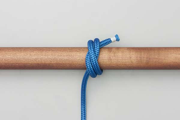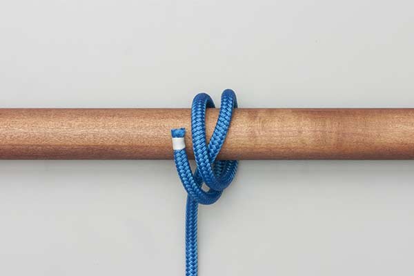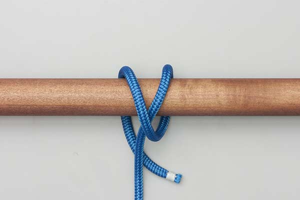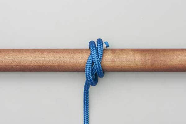 Pass the rope around the bar and then across the first turn. Pass the rope around a second time following the same path. Then tuck the rope under both of the first turns and pull tight. If the knot is laid incorrectly, the knot becomes a less secure half knot beside the two loops.