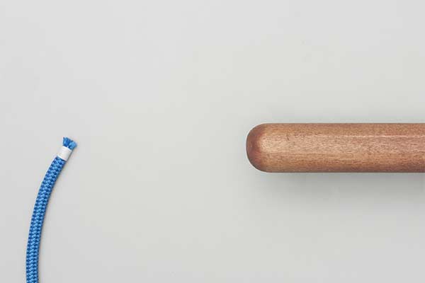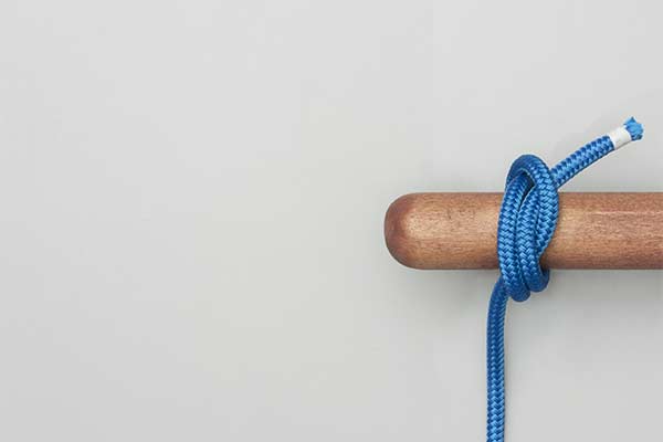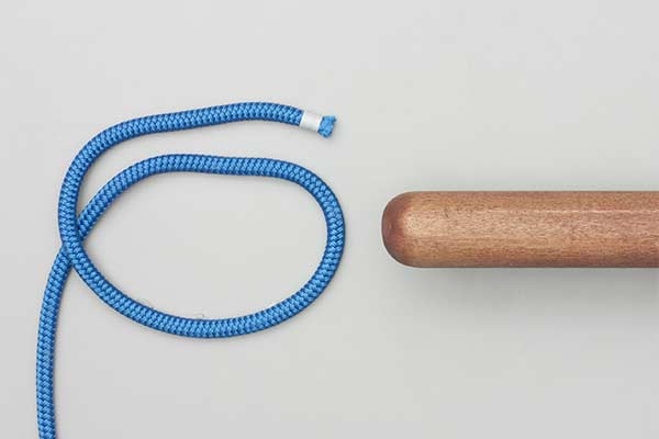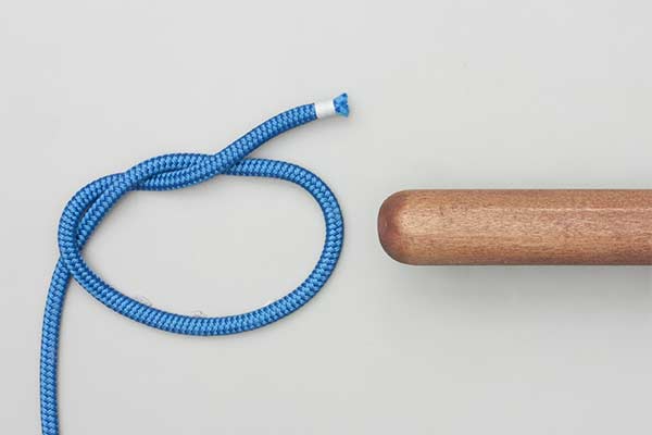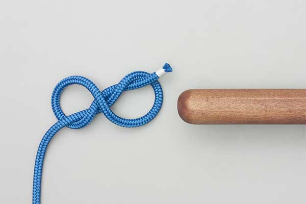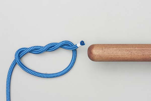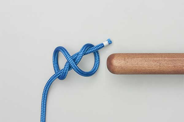 Form a loop and pass the end through the loop twice to form a Double Overhand knot. Twist the knot to look like a figure 8. Slide this double loop onto the pole and pull tight. If the knot is laid incorrectly, the knot becomes a less secure half knot beside the two loops.