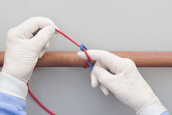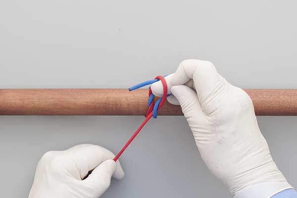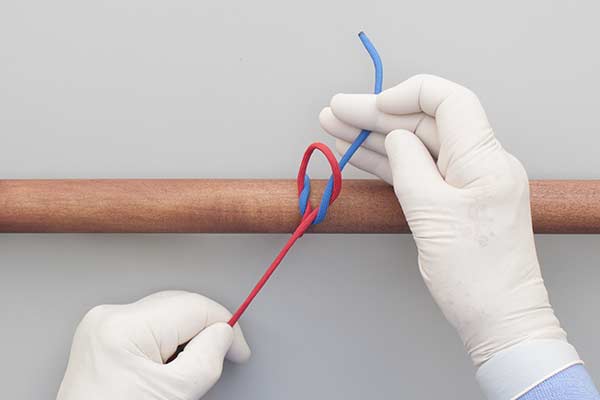 Repetition: The sequence shown in the animation is usually repeated to provide security. This precaution is appropriate because Square Knots are notoriously unreliable and because the completed knot is often hard to see – it could comprise a stack of slippery Half Hitches instead of the intended Square (Reef) Knot.