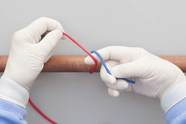 Techniques: In the One-Hand technique the end of the suture is Pulled through to form the knot. The distinctive feature of a surgical tie is that the technique keeps the ends taut during the tying process. This maintains tension in the first Half Knot while the additional locking half knot is being tied. Alternative techniques include the Two Hand Technique, the Instrument Tie, and the Surgical Slip Tie.