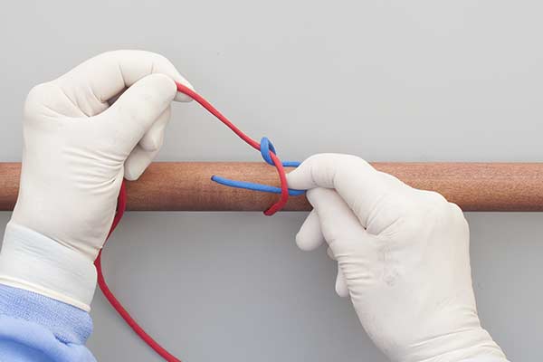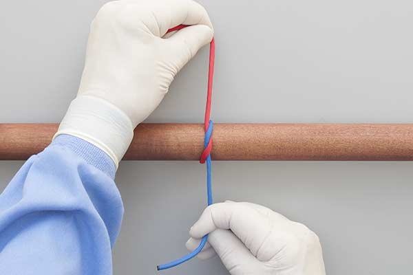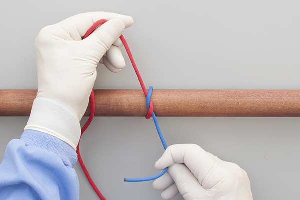 Uses: The Surgical Tie is a Square (Reef) Knot (ABOK # 460, p 75.) It is widely used in surgery although less secure than the Ligature Knot, which starts with an initial Double Throw Knot.