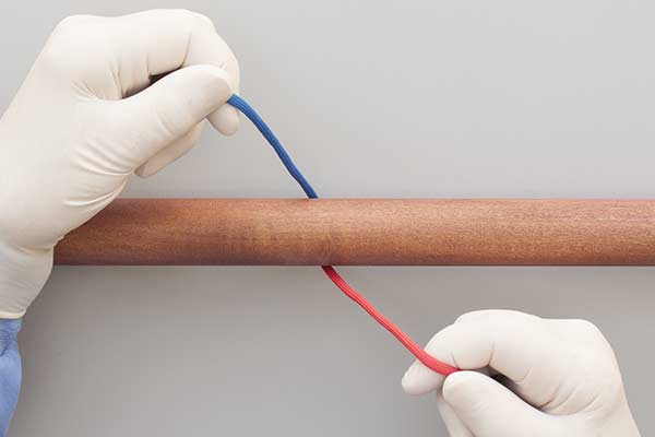 Techniques: In the Two Hand technique the end of the suture is Pushed through to form the knot. The distinctive feature of a surgical tie is that the technique keeps the ends taut during the tying process. This maintains tension in the first Half Knot while the additional locking half knot is being tied. Alternative techniques include the One Hand Technique, the Instrument Tie, and the Surgical Slip Tie.