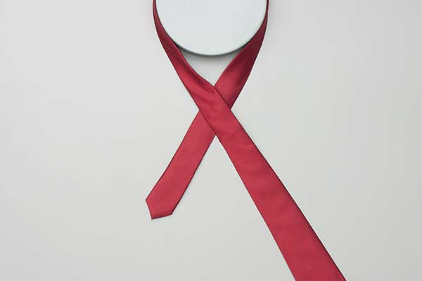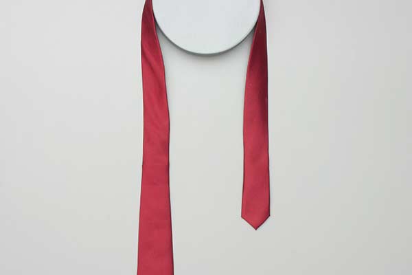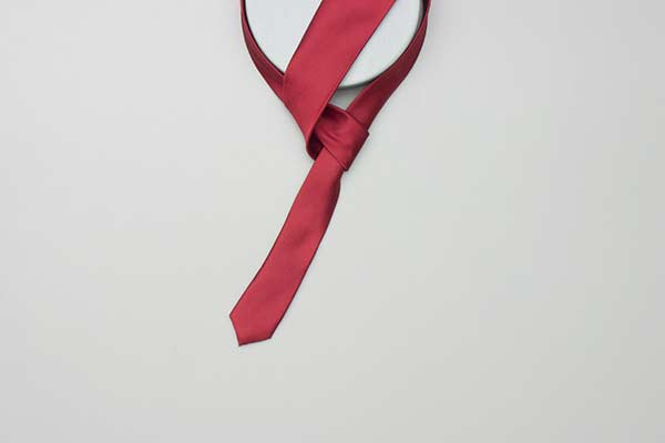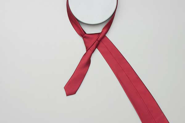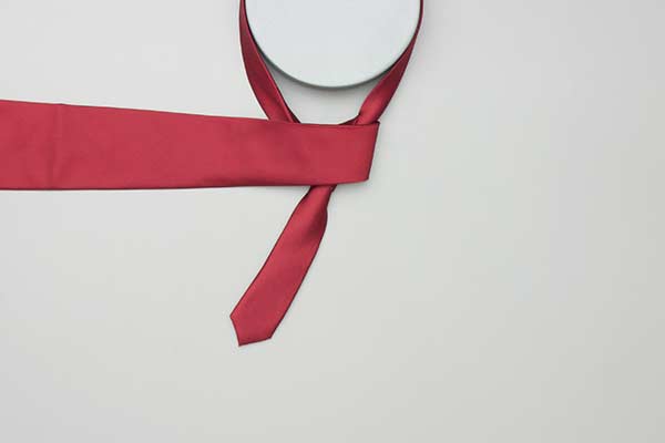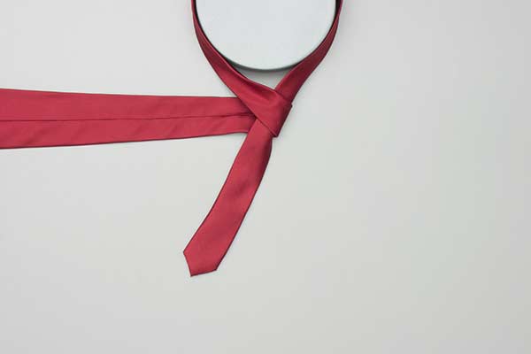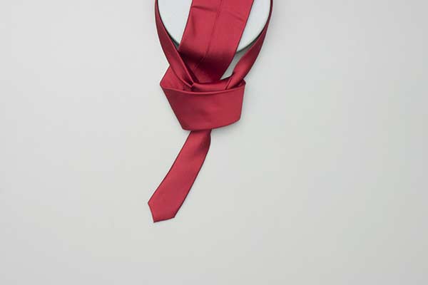 Pass the long end over the short, back under it, and then backwards beside the neck emerging on the other side. Pass the end across, this time in front. Pass the end forwards beside the neck and down through the knot. Pull the long end to tighten the knot, then the short end to make snug against the neck.