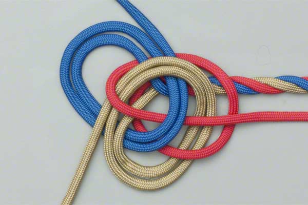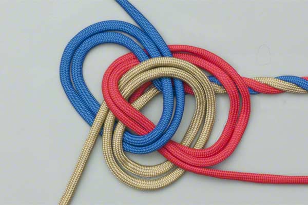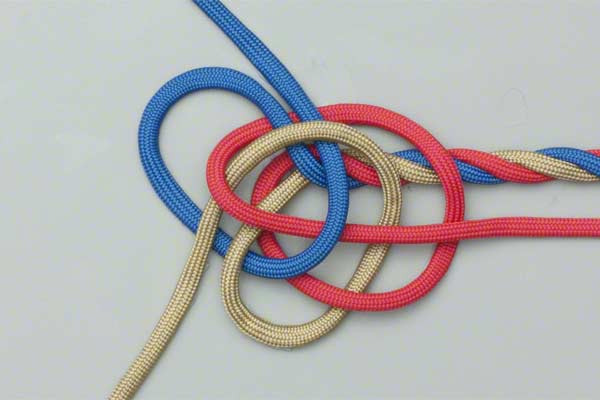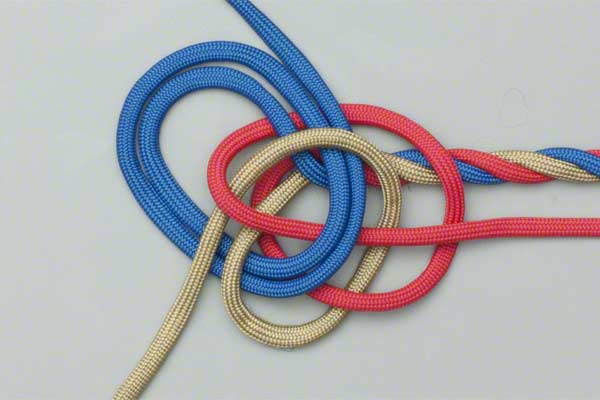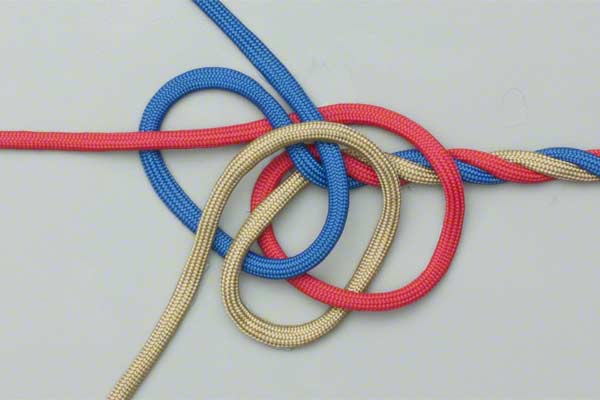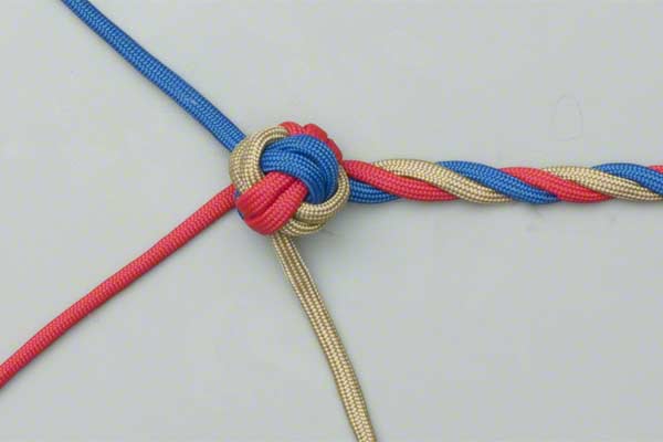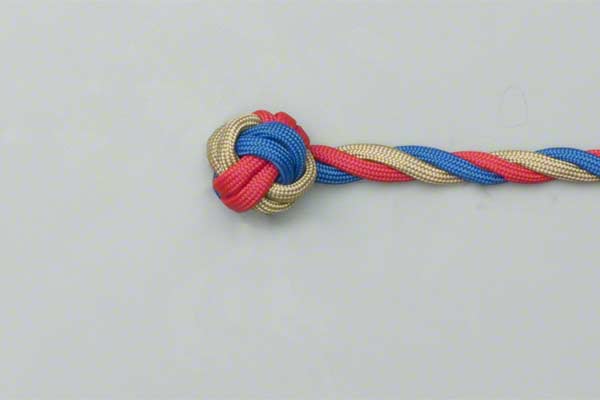 Unravel the strands of the rope and tie a Wall knot. Then take each strand across its neighbor to make a Crown. Tuck each strand round so that it follows itself. Carefully tighten each stand in turn to achieve a neat appearance. Trim the ends.